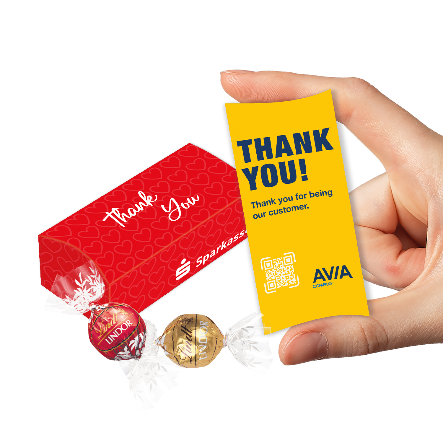 Personalised present box containing two wrapped Lindor praline balls (25g). Mixed Flavours.